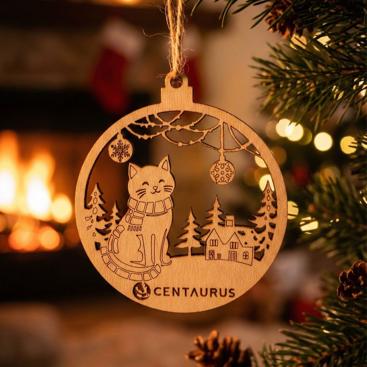 Wprowadź do swojego domu wyjątkowy, świąteczny klimat dzięki naszej bombce z motywem świątecznego kotka oraz logo Fundacji Centaurus.