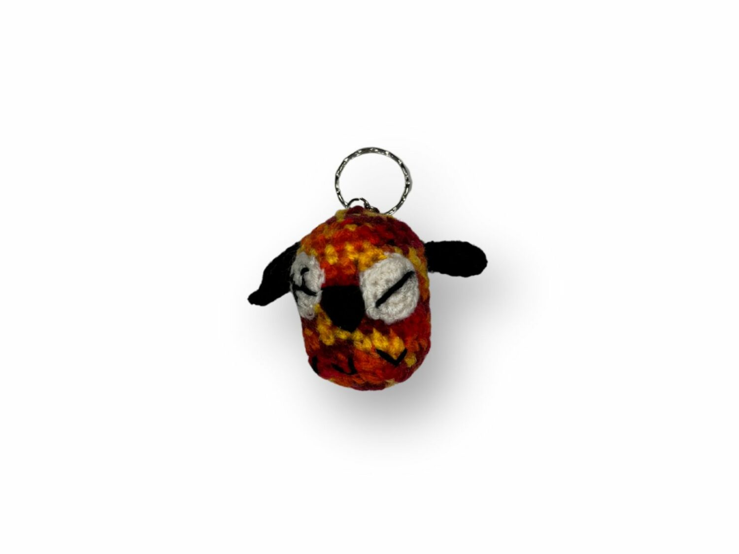 Breloczek misiek, ręcznie wykonany z wysokiej jakości włóczki, jest mięciutki, idealny do przytulania i nie mechaci się. Dominującym kolorem jest czerwony.