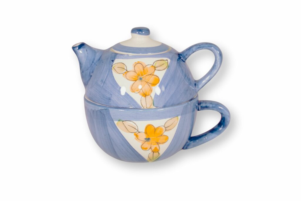 Zestaw herbaciany – filiżanka z czajniczkiem. Estetycznie wykonany, wygodny – doskonale sprawdzi się do parzenia ulubionej herbaty oraz ziół. Zestaw w przepięknym niebieskim kolorze, ozdobiony motywem kwiatów.