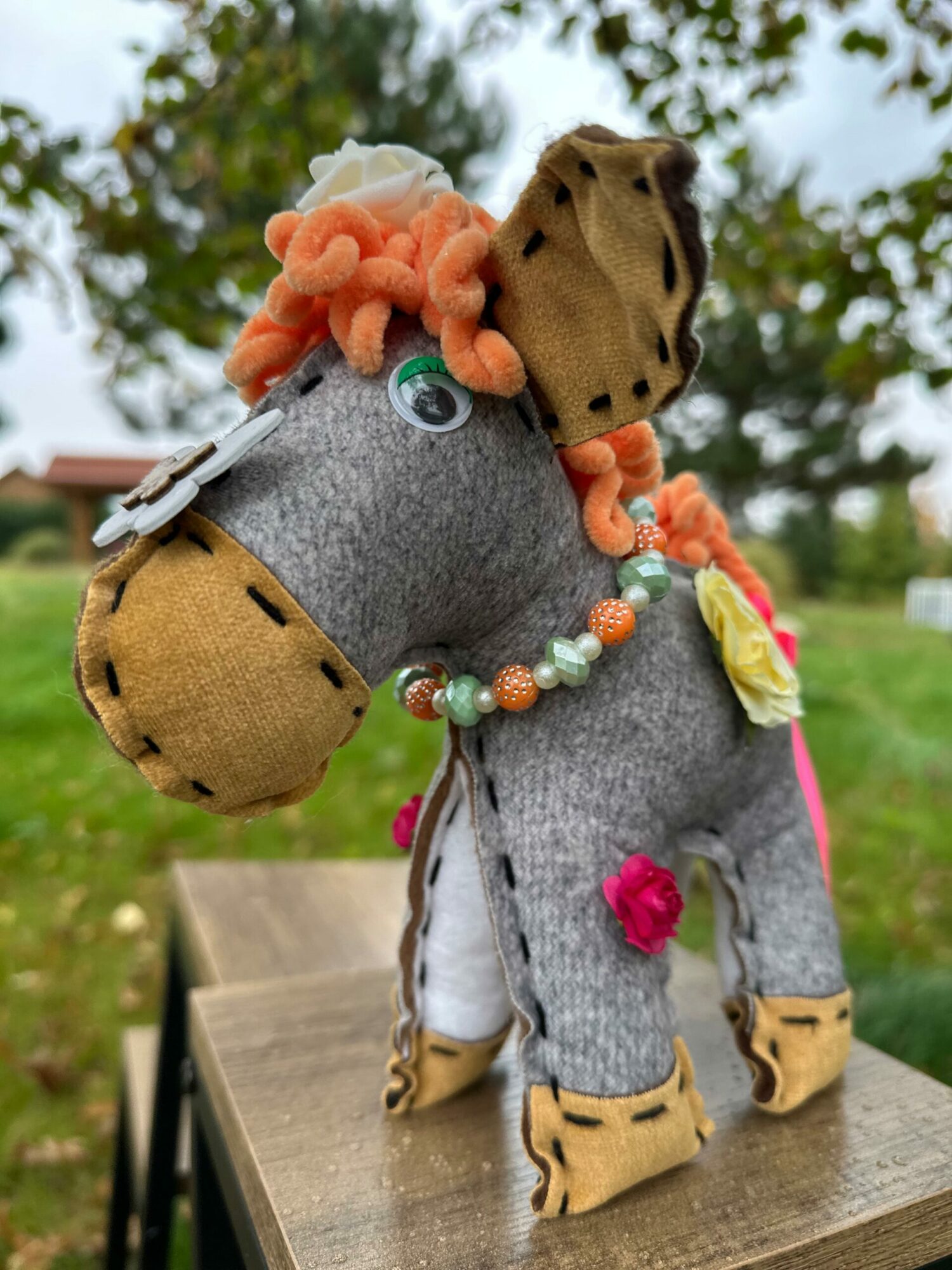 Każdy Kopyciak jest szyty ręcznie, z ogromną dbałością o każdy szczegół. Przygotowanie jednego zajmuje nawet kilka dni – nie ma dwóch takich samych Kopyciaków. Każdy powstaje z innej inspiracji, ma unikalne dodatki i jest absolutnie wyjątkowy, tak jak każdy z naszych koni w Centaurusie.