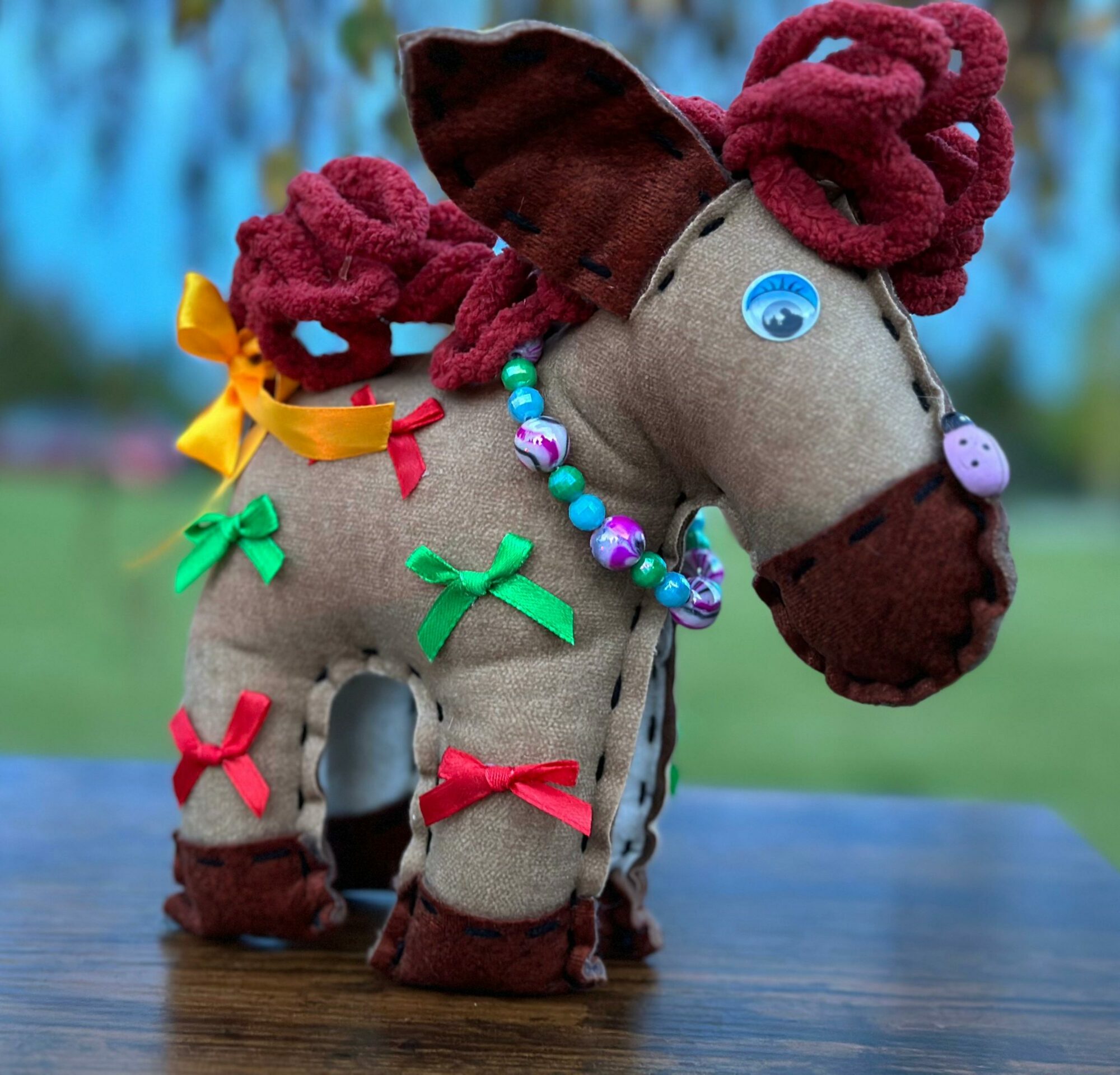 Każdy Kopyciak jest szyty ręcznie, z ogromną dbałością o każdy szczegół. Przygotowanie jednego zajmuje nawet kilka dni – nie ma dwóch takich samych Kopyciaków. Każdy powstaje z innej inspiracji, ma unikalne dodatki i jest absolutnie wyjątkowy, tak jak każdy z naszych koni w Centaurusie.