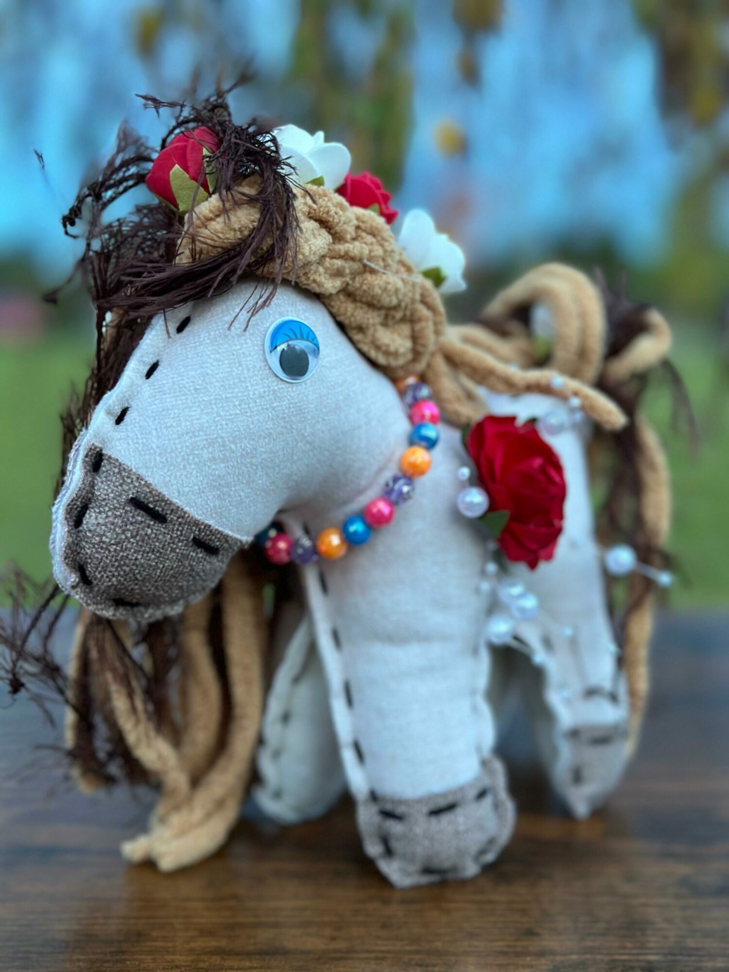 Każdy Kopyciak jest szyty ręcznie, z ogromną dbałością o każdy szczegół. Przygotowanie jednego zajmuje nawet kilka dni – nie ma dwóch takich samych Kopyciaków. Każdy powstaje z innej inspiracji, ma unikalne dodatki i jest absolutnie wyjątkowy, tak jak każdy z naszych koni w Centaurusie.