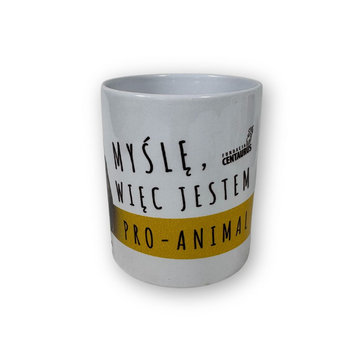 Ceramiczny kubek z napisem Myślę, więc jestem pro-animal.