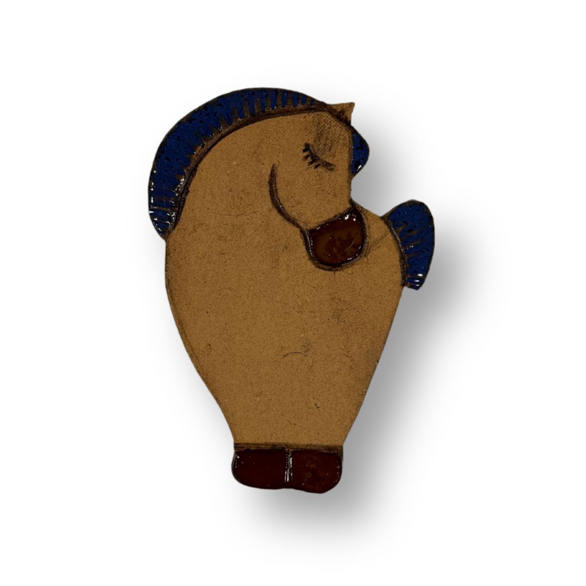 Piękny magnes na lodówkę z motywem konia w kolorze brązu z ciemną grzywą. Może być idealnym prezentem dla każdego miłośnika koni.