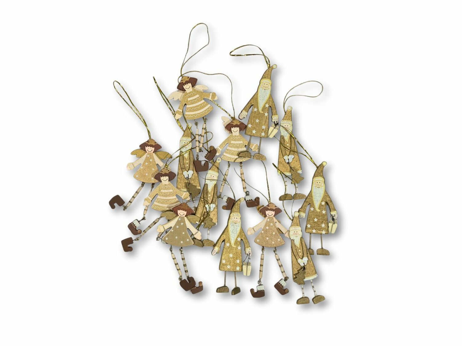 Drewniane bombki cieszą się coraz większą popularnością i stanowią ciekawą alternatywę dla osób ceniących gustowne dekoracje. W zestawie znajdują się aniołki oraz mikołajki, których uniwersalny styl doskonale pasuje zarówno do wnętrz klasycznych, jak i nowoczesnych.