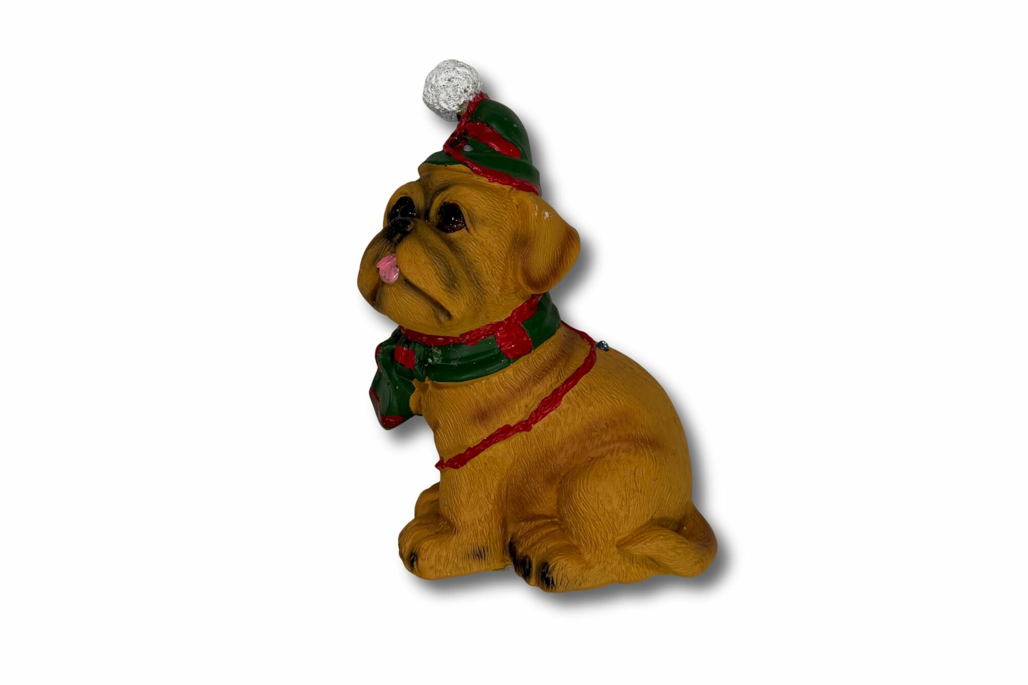 Śliczny świąteczny piesek będzie cudowną ozdobą na świąteczny stół bądź do dziecięcego pokoju. Piesek jest na baterie i świeci.