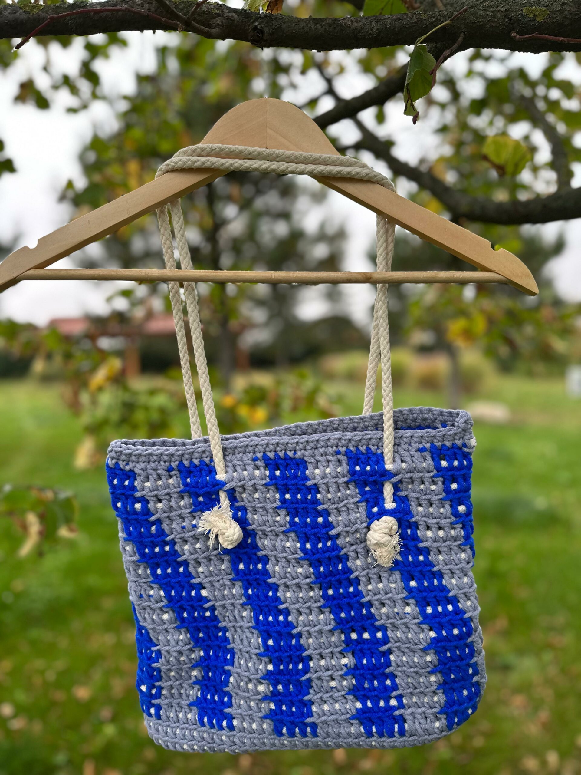 Nasze torby są unikalne, ponieważ powstają ręcznie, co oznacza, że nie istnieją dwa identyczne egzemplarze. Posiadają oryginalny design. Materiał jest wytrzymały i mocny, dzięki czemu torba może służyć przez wiele lat. Jest funkcjonalna, zaprojektowana tak, aby nadawała się na różne okazje, na przykład na zakupy lub na plażę. Torba jest w kolorze chabrowo-szarym. Nie posiada zapięcia.