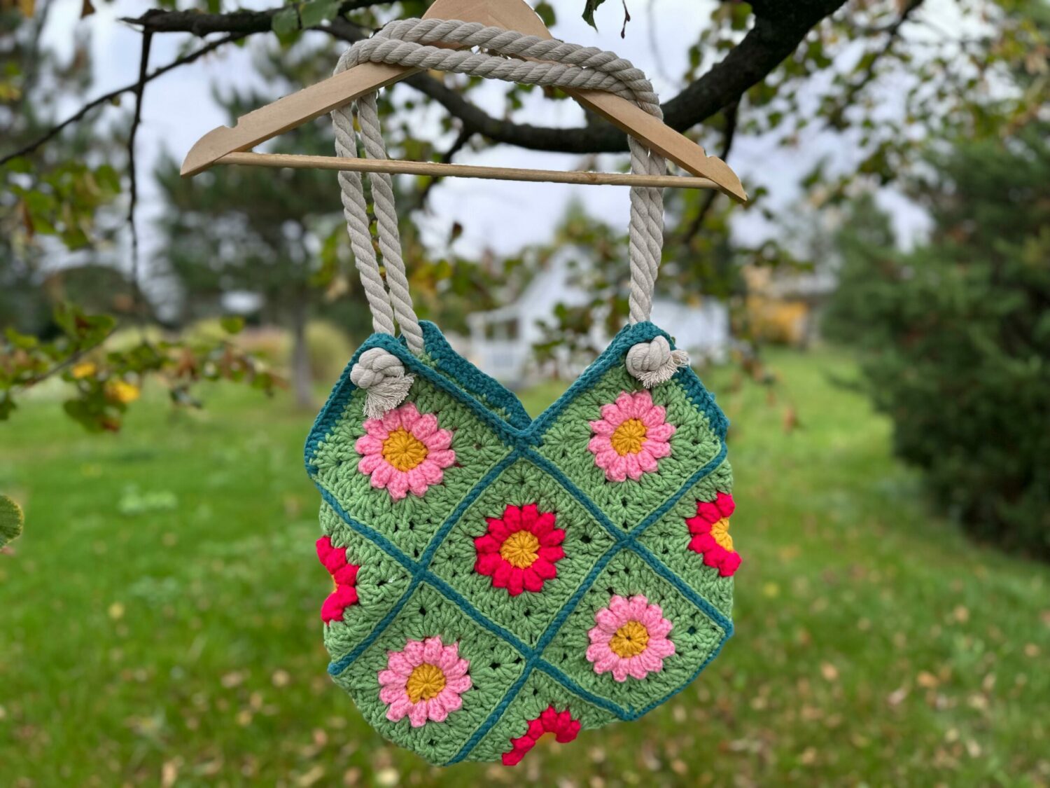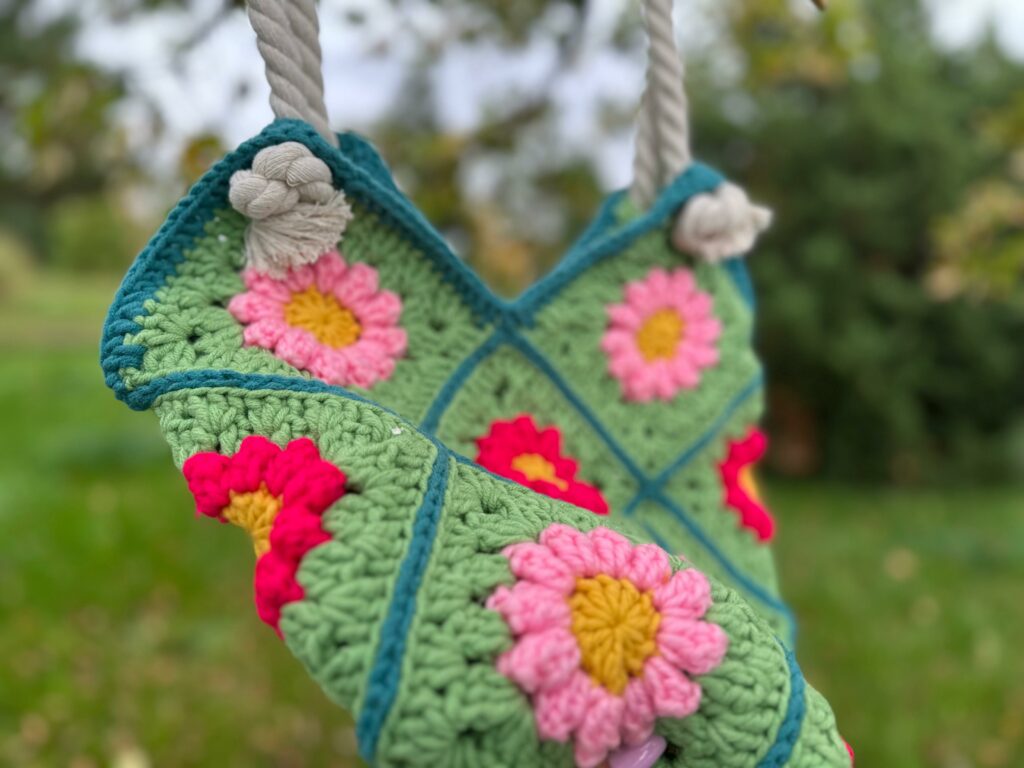 Nasze torby są unikalne, ponieważ powstają ręcznie, co oznacza, że nie istnieją dwa identyczne egzemplarze. Posiadają oryginalny design. Materiał jest wytrzymały i mocny, dzięki czemu torba może służyć przez wiele lat. Jest funkcjonalna, zaprojektowana tak, aby nadawała się na różne okazje, na przykład na zakupy lub na plażę. Torba jest w kolorze zieleni z naszytymi różowymi oraz czerwonymi kwiatami. Nie posiada zapięcia.