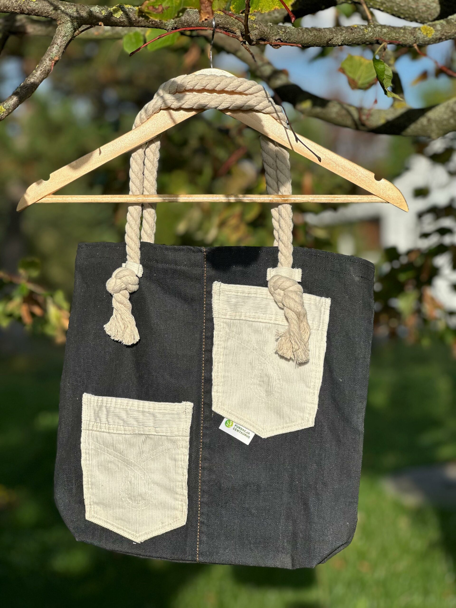 Nasze torby są unikalne, ponieważ powstają ręcznie, co oznacza, że nie istnieją dwa identyczne egzemplarze. Posiadają oryginalny design. Materiał jest wytrzymały i mocny, dzięki czemu torba może służyć przez wiele lat. Jest funkcjonalna, zaprojektowana tak, aby nadawała się na różne okazje, na przykład na zakupy lub na plażę. Torba jest w kolorze ciemnego jeansu z dwoma kieszonkami oraz logo Centaurusa. Nie posiada zapięcia.